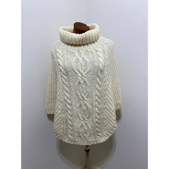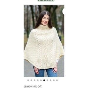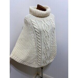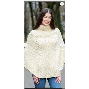 Saol Aran Cowl Neck Knit Poncho for Women, 100% Premium Quality Merino Wool Wrap
