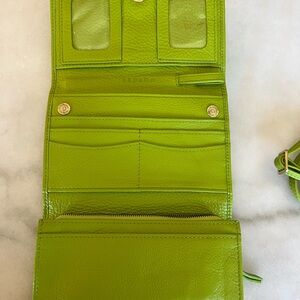 Elevate your accessory collection with this vibrant green leather wallet. Its bold color adds a stylish touch to any ensemble.