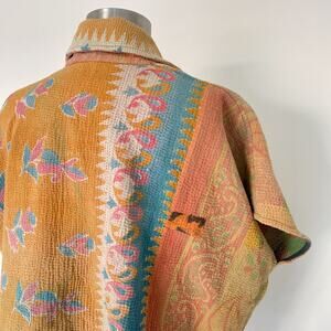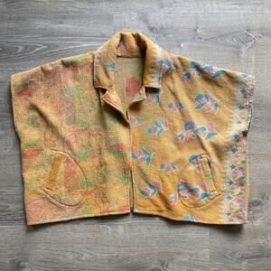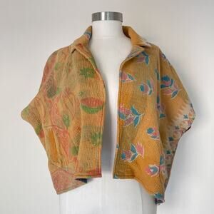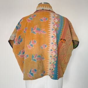 Sapana Cropped Blanket Coat Kantha Quilt Handmade Boho One Of A Kind Reversible