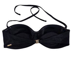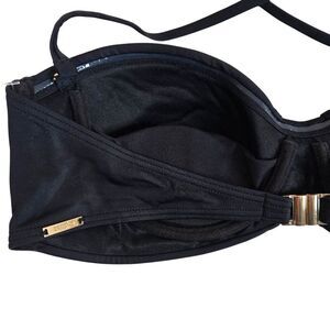 Sapph Black Bandeau Bikini Top Gold Zipper Detail Removable Straps Womens Sze M