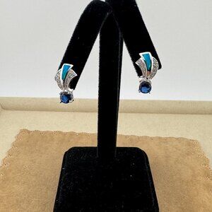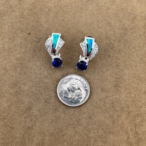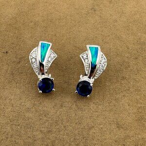 1.25 Carat Sapphire & Australian Opal Inlay with white Topaz 925 Sterling Silver Earrings NWT 3/4 inch Tall 3/8 inch wide