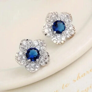 Sapphire Blue Pave Crystal Flower Stud Earrings