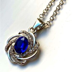 TAGS: faux sapphire necklace silver tone pendant blue gemstone jewelry September birthstone necklace unisex pendant necklace boutique jewelry #sapphirenecklace #birthstonenecklace #silverjewelry #septemberbirthstone