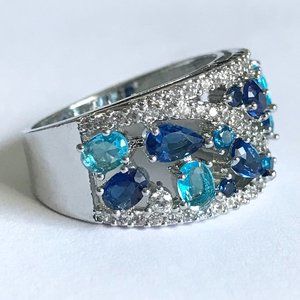 Sapphire Cocktail Ring Silver RhodiumPlated Simulated Blue Cubic Zirconia Size 7