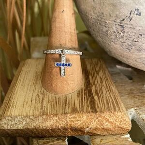 Sapphire Cross Dangle Sterling Silver CZ Ring Sizes 9,10