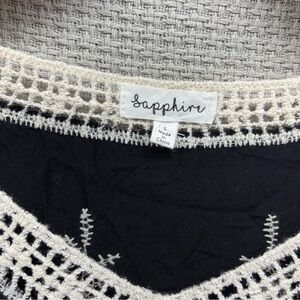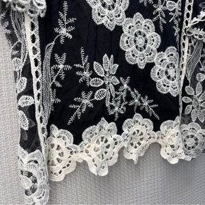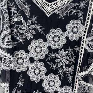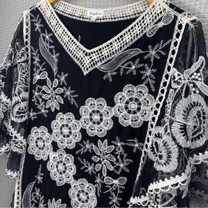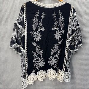 Sapphire Embroidered Crochet Women’s Floral Blouse Tunic Boho Black White Size S