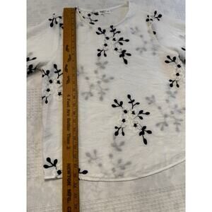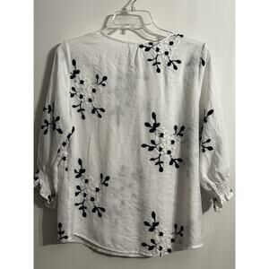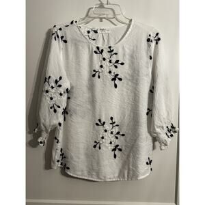 Sapphire Long Sleeve White Embroidered Flowers Blouse Sz LP Preppy Summer Office