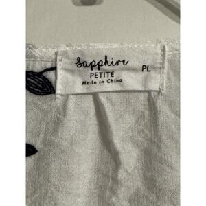 This Sapphire blouse in size LP is a elegant and feminine option for women looking for a delicate floral design. The white color and embroidered flowers add a touch of romance to the long sleeve top, making it a versatile piece that can be dressed up or down for any occasion. Perfect for petites, this blouse is a stylish addition to any wardrobe.