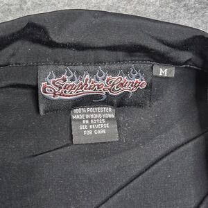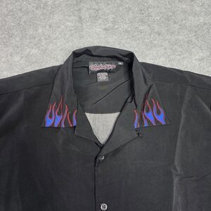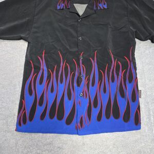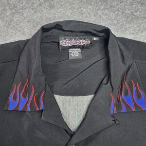 Sapphire Lounge Blue Flame Shirt Mens Medium Black Bowling Camp Collar Button Up