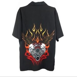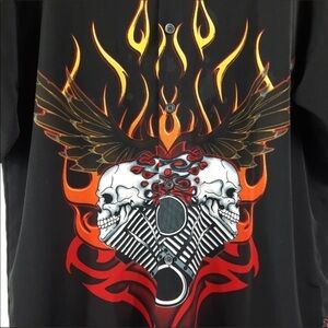 Sapphire Lounge Flame and Skull Button Down Short Sleeve Shirt Large