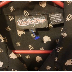 Sapphire Lounge Shirt Men Large Button Down Black Skull Trident Y2K Guy Fieri