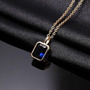 Sapphire Necklaces 14K Gold Dainty Rectangle Necklace Birthstone Navy Blue Penda