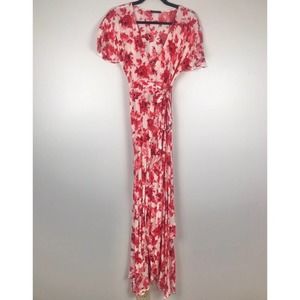 Sapphire O Red Rose Print Wrap Maxi Dress Size Medium