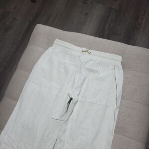 Linen Blend Cream Pants with Rope Tie Drawstring by Sapphire Red Womens Medium