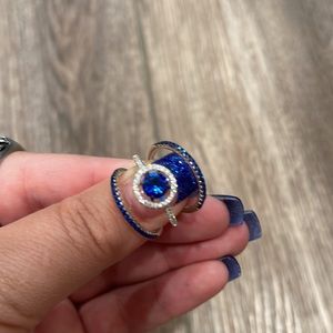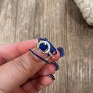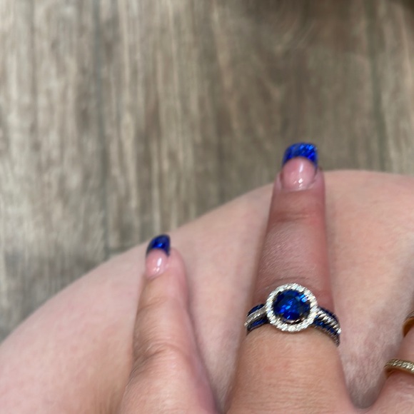 Beautiful Bella Luce Blue Sapphires and White Diamond Simulants with Rhodium over Sterling Silver Ring With Bands. Beautiful for an Engagement Set or just to wear as is. A Must Have! Tag is present but not attached.