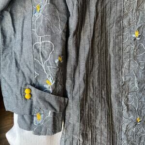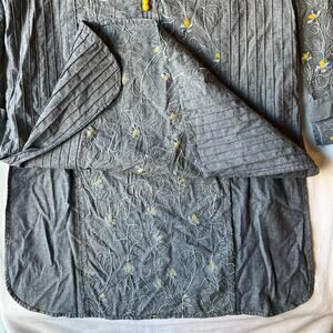 Sapphire Women Long Sleeve Denim Embroidered Knee Length Slit Dress size S, Blue