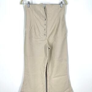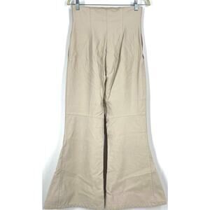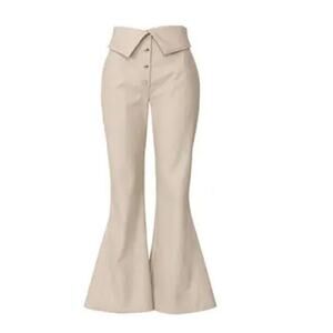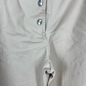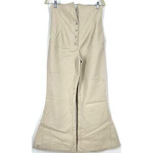 Sara Battaglia High Waist Faux Leather Pants Cream Wide Leg IT Size 42