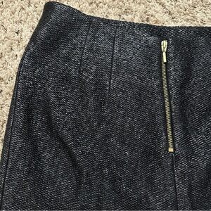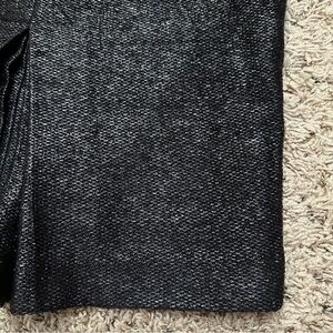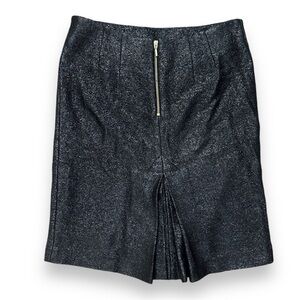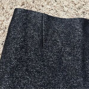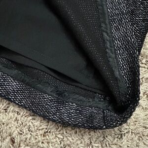 Black basket weave pencil skirt with a pleated back vent. Fully lined. Back zipper closure. Pre-owned in very good condition, no stains or holes.