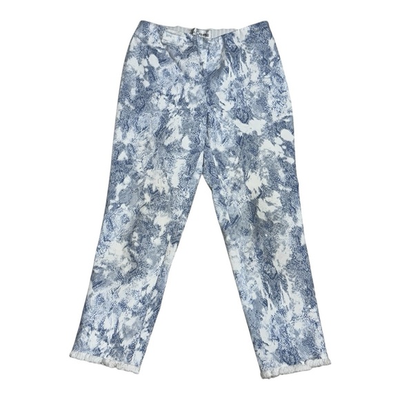 Sara Campbell Blue White Abstract Print Crop Pants Fringe Hem Size 6
