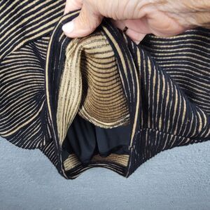 The magic of this dress is the way the sections are sewn together and the way the light catches on the black dress with peeks of gold showing through.