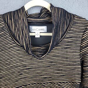 Add a trendy edge to your closet with this Sara Campbell midi sweater dress. Cowl neck, bold stripes, and luxe wool blend fabric create effortless comfort and style. Dress up for work, layer for brunch or cozy up for casual nights. Excellent pre-owned condition, with no stains or snags. Styling tip: Pair with boots and statement earrings for head-turning fall looks.