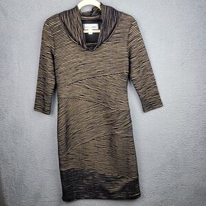 Sara Campbell Midi Wool Blend Cowl Neck Sweater Dress Striped Cozy Trending