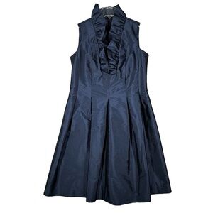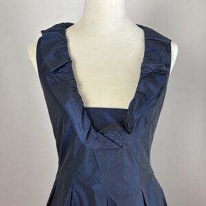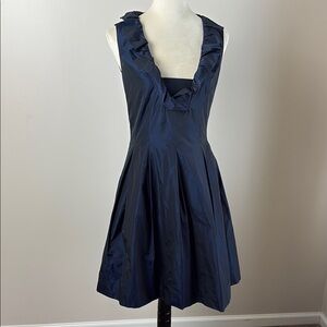 Sara Campbell Navy Ruffle Neck Dress Sleeveless Pleated Skirt Size 4