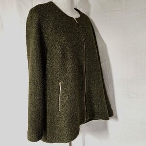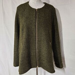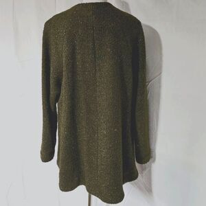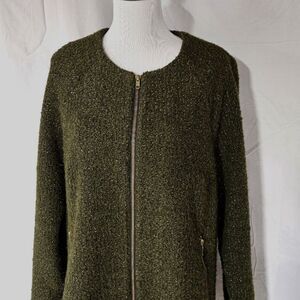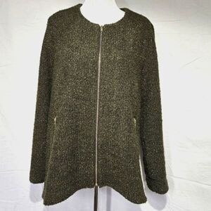 Sara Campbell Olive Green & Gold Metallic Wool Blend Zip Front Knit Sweater Coat