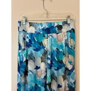 Sara Campbell Printed Merritt Pant Blue Floral Wide Leg Pull On Elastic Small