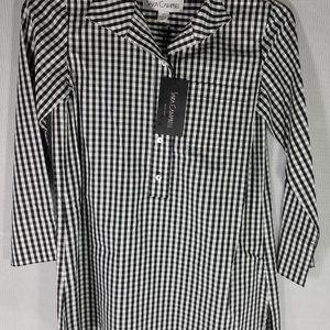 Sara Campbell XS Black White Collared Striped Button Down Tunic Dress Shirt NWT