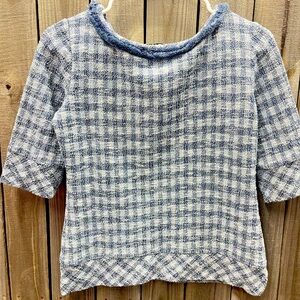 Sara Campbell top small rough texture checkered pattern cotton blend fluffy trim