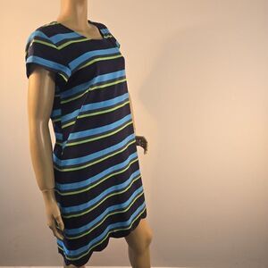 Sara Campbell Striped Shift Dress Women Sz XL Scalloped Hemline