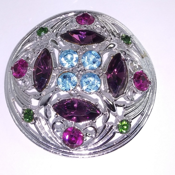 Sara Cov Purple Springtime 1972 Rhinestone Brooch Pin