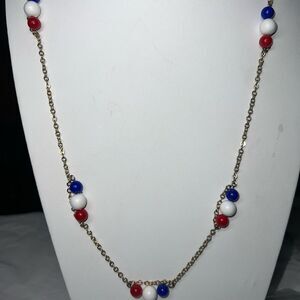 Sara Coventry Vintage Red White and Blue Gold Tone Necklace and Clip Earrings Set