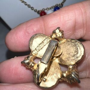 Sara Coventry Vintage Red Whit and Blue Gold Tone Necklace and Clip Earrings Set