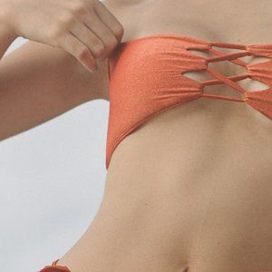 Sara Cristina Hava Bikini with Bandeau Top and Bottom in Shiny Orange Size XS