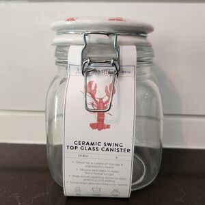 Sara Fitz Ceramic Swing Top Glass Canister with Lobster Design