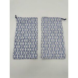 Sara Flint Set Of 2 Blue & White Drawstring Fabric Shoe Bags With Floral Pattern