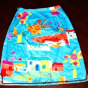 #SaraJane #Skirt #NoveltyPrint #Vintage #Retro #Cottagecore #Indie #ArtHoe #MadeInUSA #Size2 #UniqueFind #Preowned #PrintSkirt #WhimsicalFashion