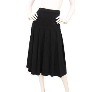 Sara Lanzi Black Wool Pleated Drop Waist Skirt Patch Pocket A-Line Midi XS S
