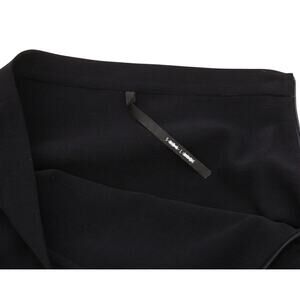 Black wool blend, drop waist, pleated skirt, patch pocket at rear left low hip, side zip closure.
