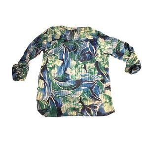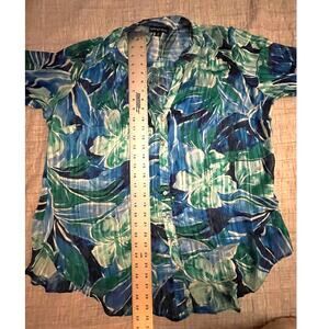 Sara Michelle - 1X Top - Blue Green Floral - Metallic Sheer - Button Front - EUC