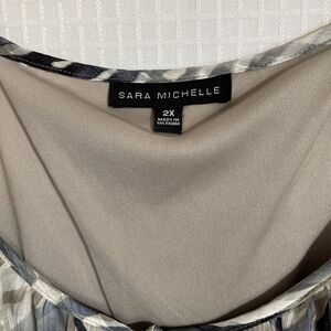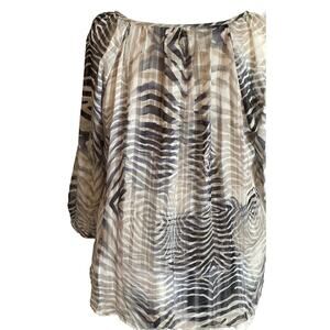 Sara Michelle 2X Peasant Top Animal Print 3/4 Sheer Sleeve Scoop Neck Layered