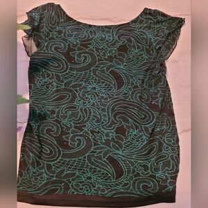 Sara Michelle Black and Green Ruffled Sequin Blouse Size Medium