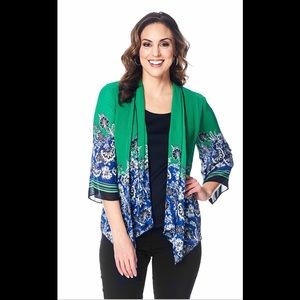 Sara Michelle Blouse two piece connecting , the top is black color and the cover is green 🌱 and blue 🦋 color size XL . Brand New with Tag . Made in VIETNAM
