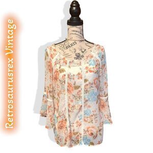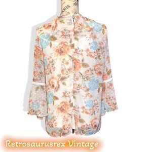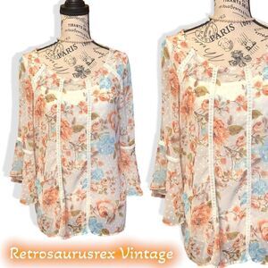 Retrosaurusrex Vintage; indie; festival; sleeveless; kimono; hippie; flower child; cottage core; unique; summer; separates; layering; witch; witchy Bohemian Long Sleeve Floral Calico Peasant Top, hippy; boho; Tunic