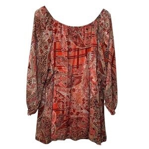 Sara Michelle Boho artsy paisley animal print leopard blouse women’s 2X