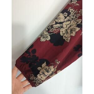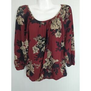 Sara Michelle Floral Red Scoop Neck Casual 3/4 Sleeve Top MED Whimsical Boho
