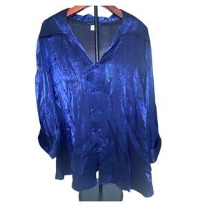 Sara Michelle Iridescent Blue Button-Up Blouse Size 3X Holiday Party New Year