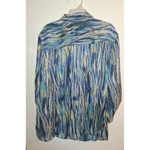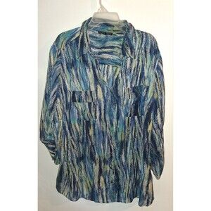 Sara Michelle Multicolor Sheer Geometric 3/4 Roll Tab Sleeve Button Up Blouse Sz